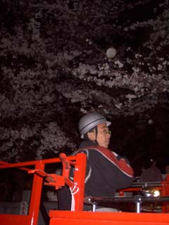 (左) 消火に出動した給水ポンプ機。意外とコンパクト。 (右) 消防車の上、 ひとだんらくした後の、消防士と夜桜とオーブ。 ごくろうさまです。 今回、たくさんのオーブ写真が撮れた。祭りにはやはり霊も集まるのだろうか。 一生分の爆竹の音を聞いた気がする。ちょっと普通の生活からは考えられない凄まじい祭りであった。是非毎年がんばって伝統を守り伝えてもらいたい。 以上、岐阜県岐阜市蔵前手力雄神社からのリポートであった。 (家に帰って顔を洗ったら、真っ黒の目やにがでた) |